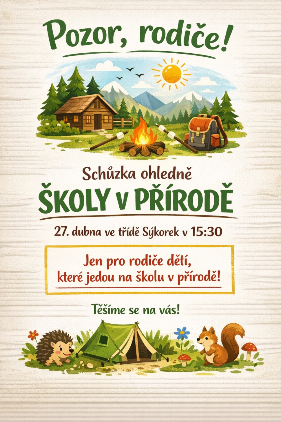 které jedou na školu v přírodě!